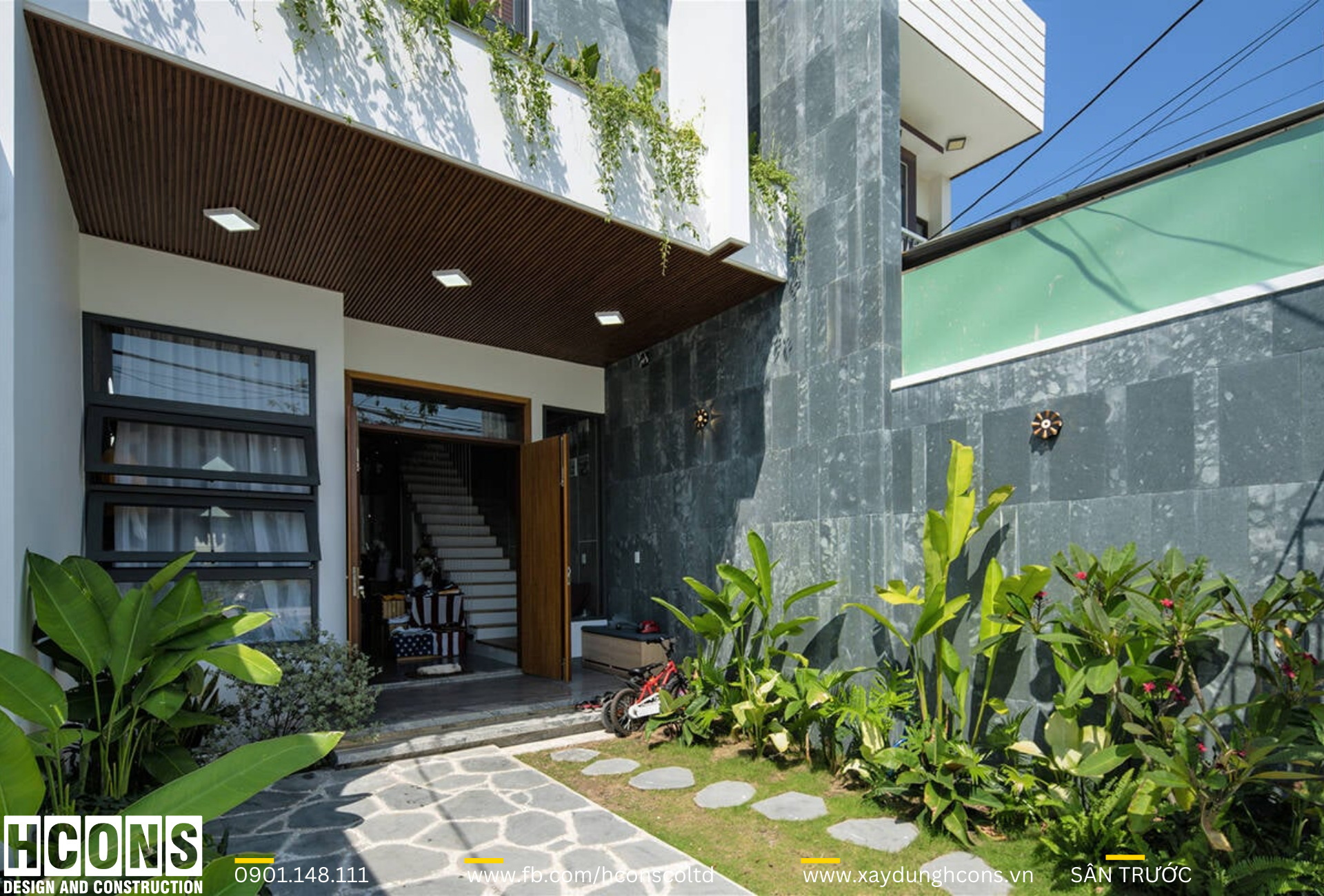 Để mang đến nhiều màu xanh cho ngôi nhà cũng như có thêm khu vui chơi cho con nhỏ, gia chủ đã chấp nhận hy sinh một phần diện tích và không gian giữa nhà. Một “khu vườn” nhỏ gồm cây lớn và dải cây bụi giúp cả gia đình thư giãn và gần gũi với thiên nhiên.