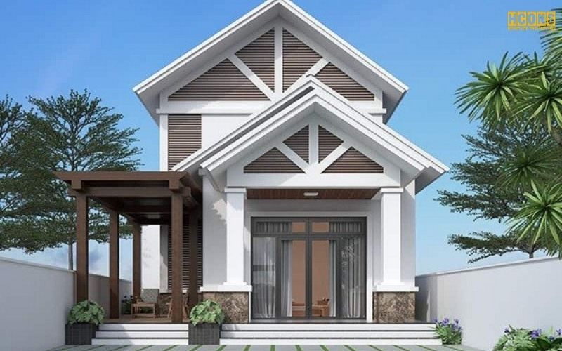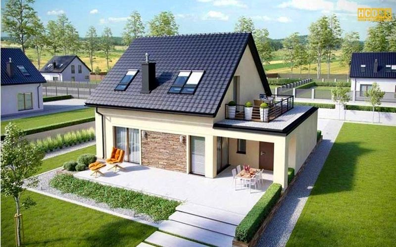 Thiết kế nhà đẹp 400 triệu sở hữu gác xép mang phong cách tiên tiến. Tông màu chủ đạo của nhà là màu xám ghi. Phần mái thái giật cấp chữ A, cửa sổ bằng kính sở hữu thêm mái bên trên đã tránh được tình trạng hắt mưa vào nhà, song song giúp tạo ra ko gian sống thật tiện nghi.